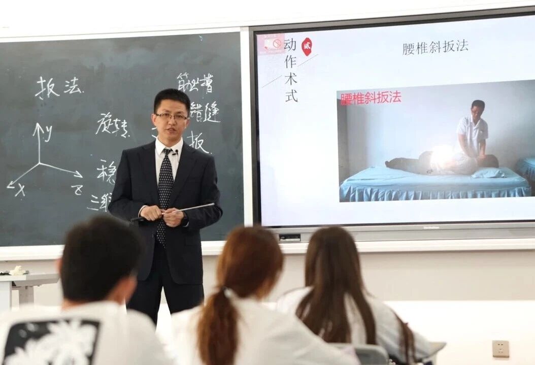 在《推拿学》的课堂上,他不仅是知识的传授者,更是思维的点燃者。他摒弃“满堂灌”的教学方式,创新采用“三阶段三融合三服务”教学模式,积极开展启发式、探究式教学。